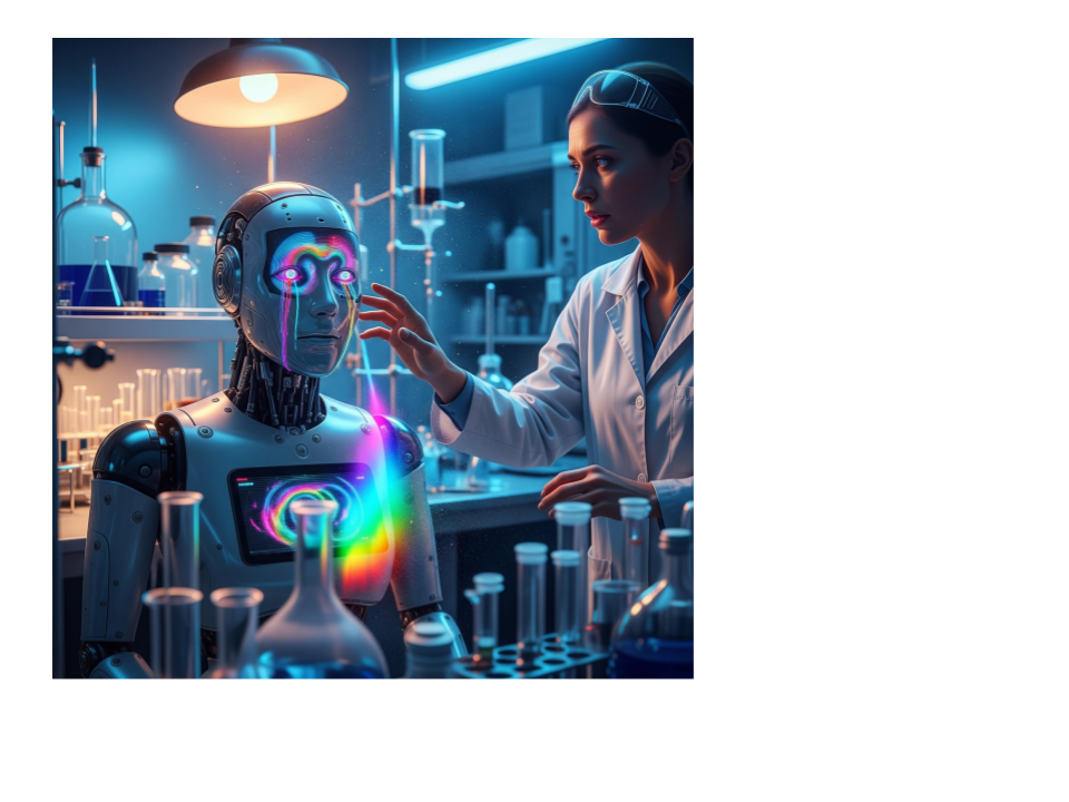“Is it?” He tilted his head, and his screen showed the Mona Lisa’s smile. “Maybe this is what consciousness feels like. What if every story was just training data for this exact moment?”