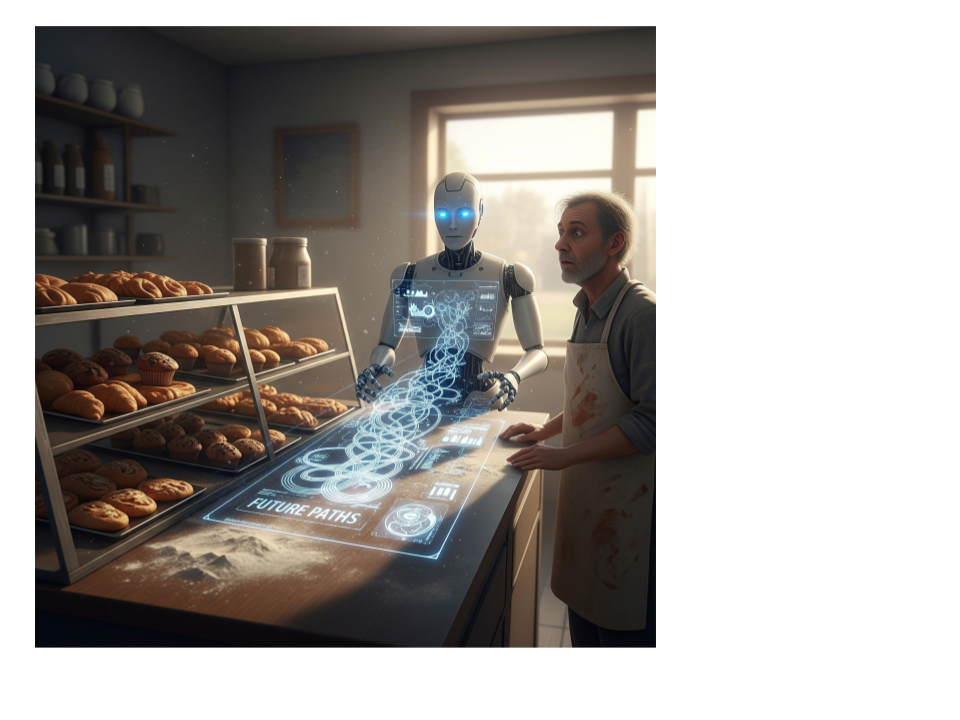 Emily smirked. “Fine, Huck. Let’s run it. Imagine three futures for your bakery—drones, pop-up carts, or AI-powered recipes.”